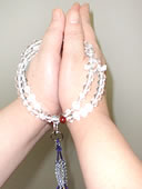 輪ちがいの念珠を2本合わせて 合掌した両手親指に掛け合わせます。